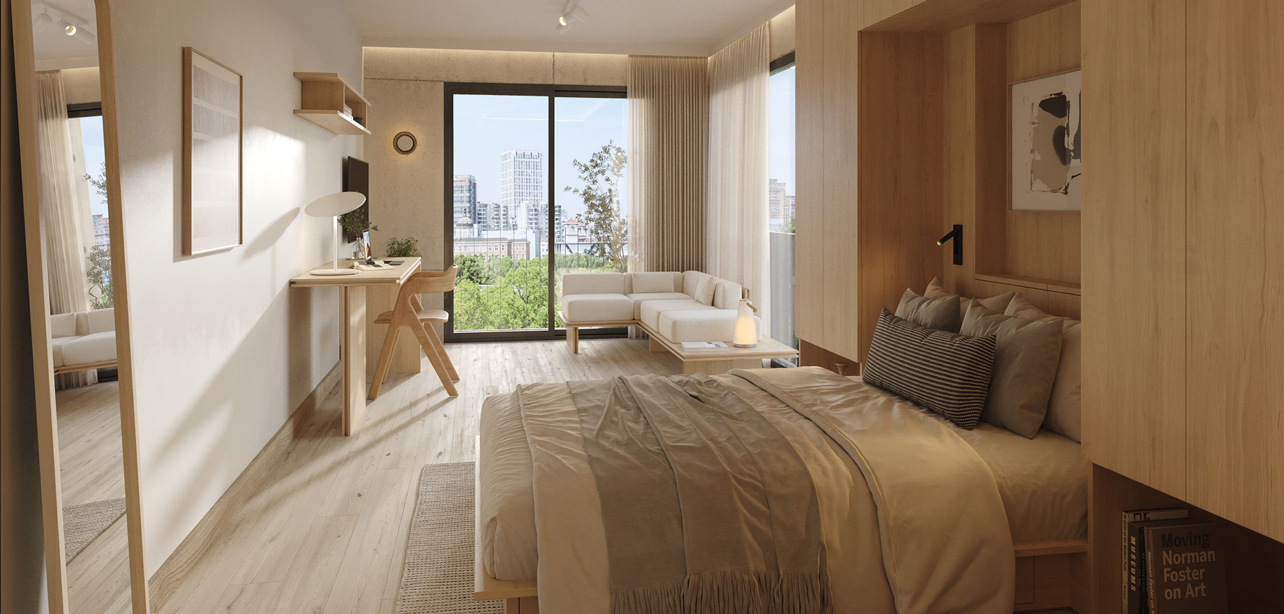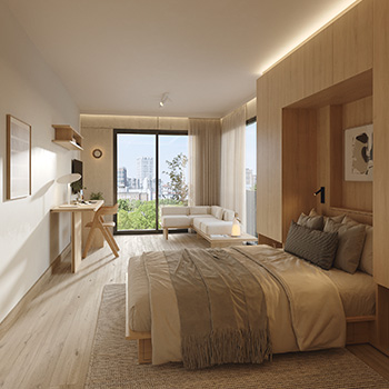 HAUSPACE es el proyecto de apartamentos creado para quienes buscan vivir cerca de un destino cosmopolita. Espacios que te brindan libertad de movimiento, independencia, flexibilidad y seguridad en un estilo de vida funcional y moderno.