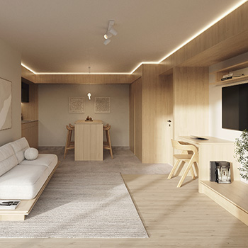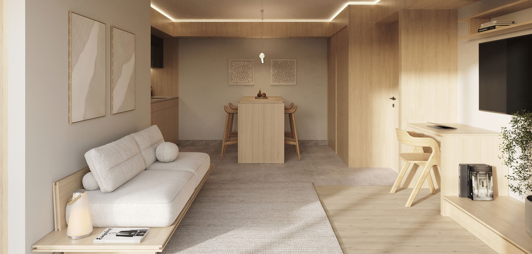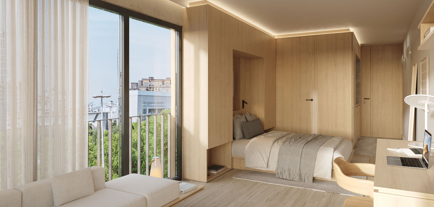 HAUSPACE es el proyecto de apartamentos creado para quienes buscan vivir cerca de un destino cosmopolita. Espacios que te brindan libertad de movimiento, independencia, flexibilidad y seguridad en un estilo de vida funcional y moderno.